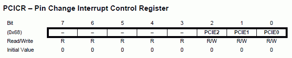 PCICR -= _BV(PCIE1); // Autorise une broche parmi PCINT[14:8] à interrompre
